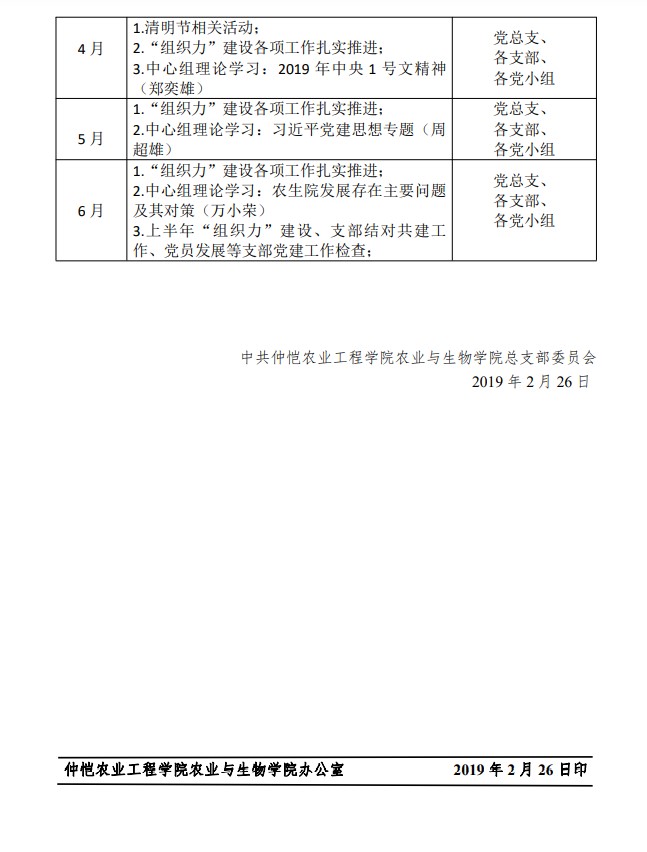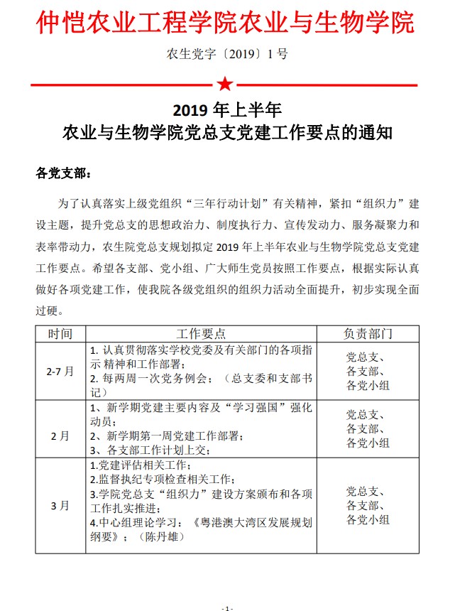 农生党字〔2019〕1号-2019年上半年农业与生物公司党总支党建工作要点的通知