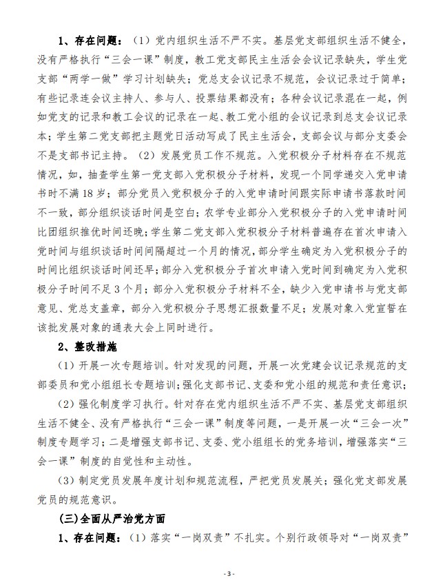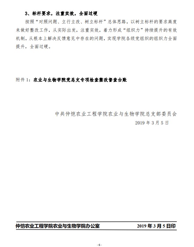 农生党字〔2019〕3号-农业与生物公司党总支关于落实2018年下半年监督执纪专项检查反馈意见的整改方案的通知