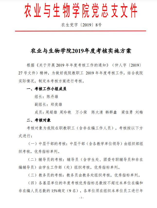 农生党字〔2019〕8号--tyc122ccvip2019年度考核实施方案