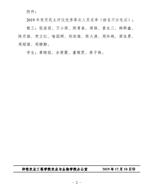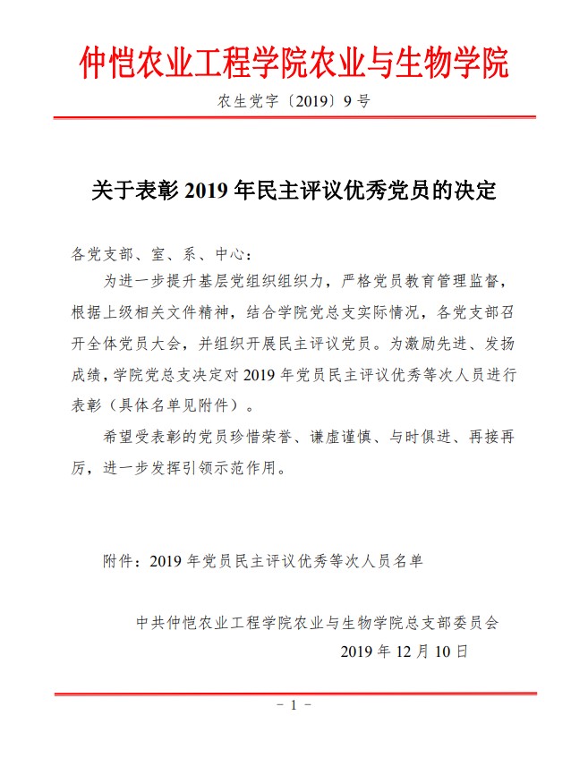 农生党字〔2019〕9号-关于表彰2019年民主评议优秀党员的决定