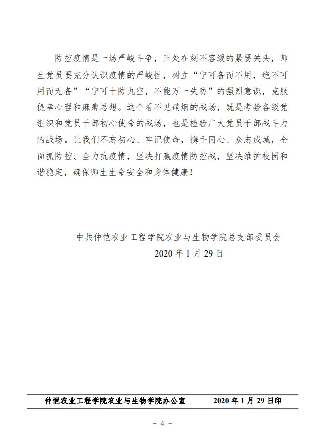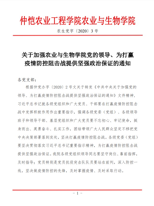 农生党字〔2020〕3号---关于加强农业与生物公司党的领导、为打赢疫情防控阻击战提供坚强政治保证的通知