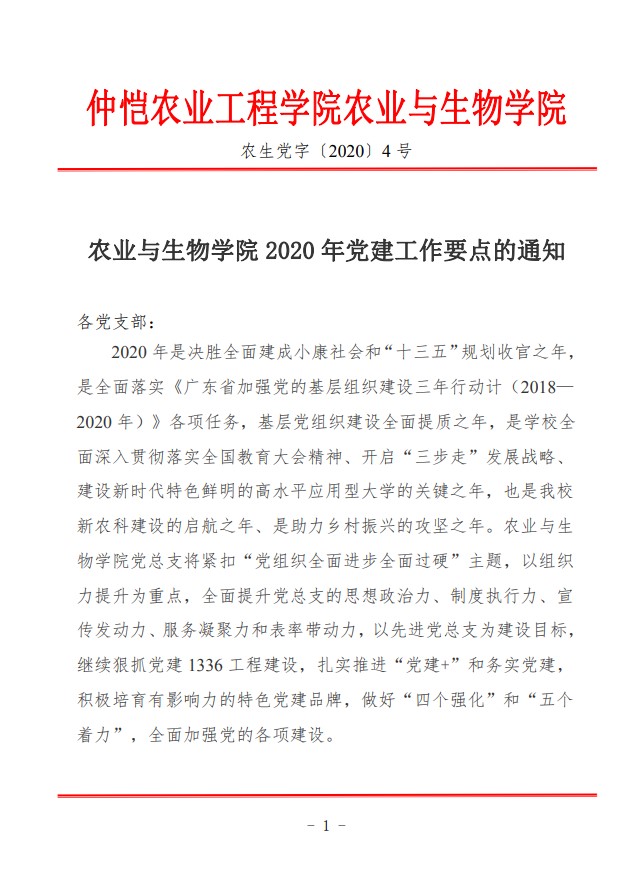 农生党字〔2020〕4 号-tyc122ccvip2020年党建工作要点的通知(3)