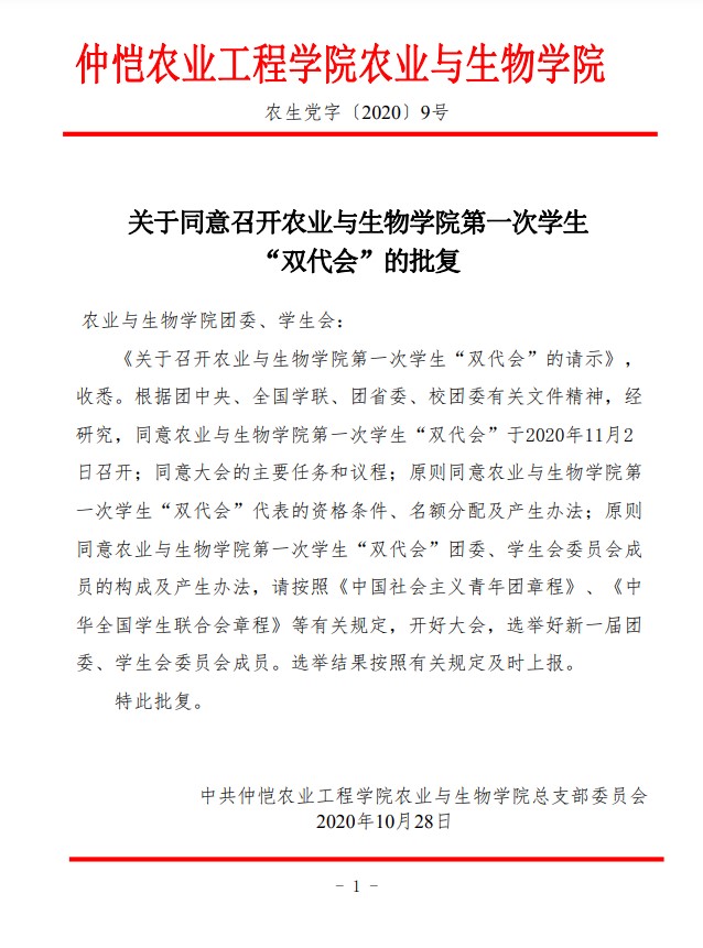 农生党字〔2020〕9号-关于同意召开tyc122ccvip第一次员工“双代会”的批复