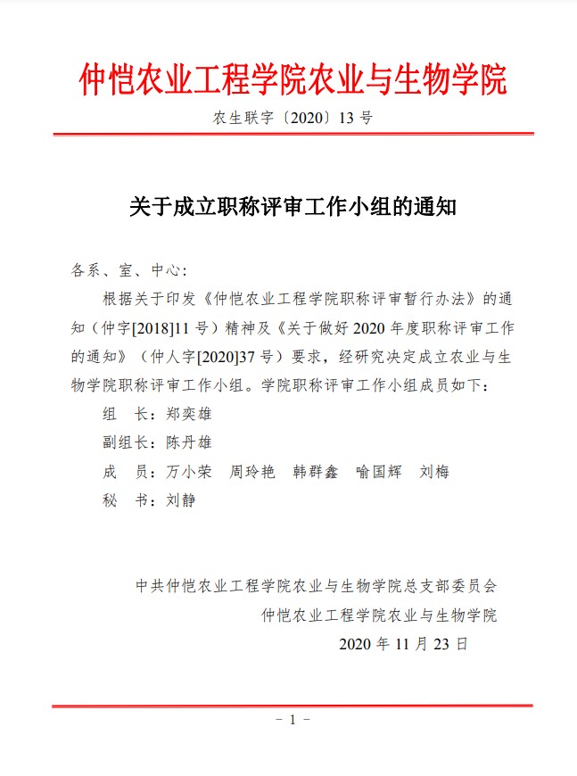 农生联字〔2020〕13号-关于成立职称评审工作小组的通知