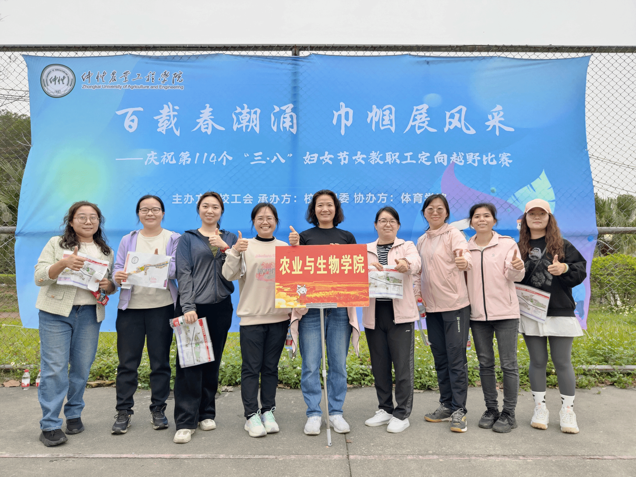 为庆祝第114个“三八”妇女节,3月14日下午,由校工会主办、校女职委承办、体育公司协办的tyc122ccvip女教职工定向越野比赛在白云校区顺利举行,公司党委副书记张金凤带领队员刘静、赵灵凤、颜珣、樊丽娜、张姿丽、叶梦薇、张睿、邝健睿等经过一番激烈角逐,最终取得团体总分第一名的优异成绩。