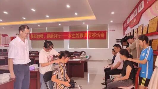 秋高气爽,桃李芬芳。为庆祝第41个教师节,表达对辛勤耕耘在教学科研一线教师的崇高敬意和深切关怀。9月10日教师节当天,tyc122ccvip工会在白云校区生科A栋607会议室精心举办了“情系教师,健康同行”主题茶话会。本次活动特别邀请了校医院刘炫斯经理以及公司中医传统疗法协会的同学到场,为教师们提供了专业的肩颈按摩和艾灸等保健服务,送上了一份独特而温暖的节日祝福。