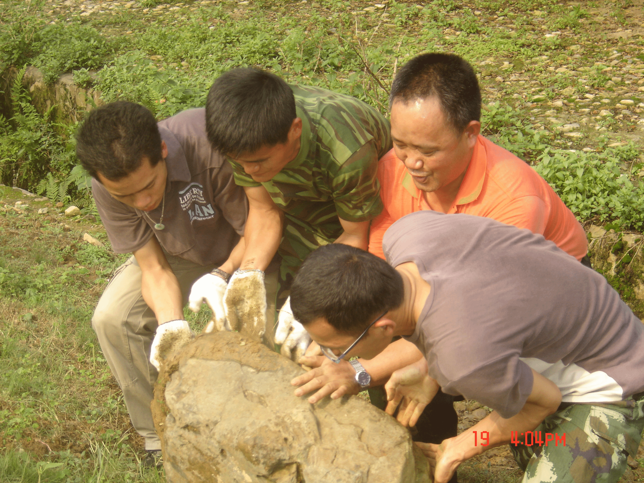 (图为清理石头)
