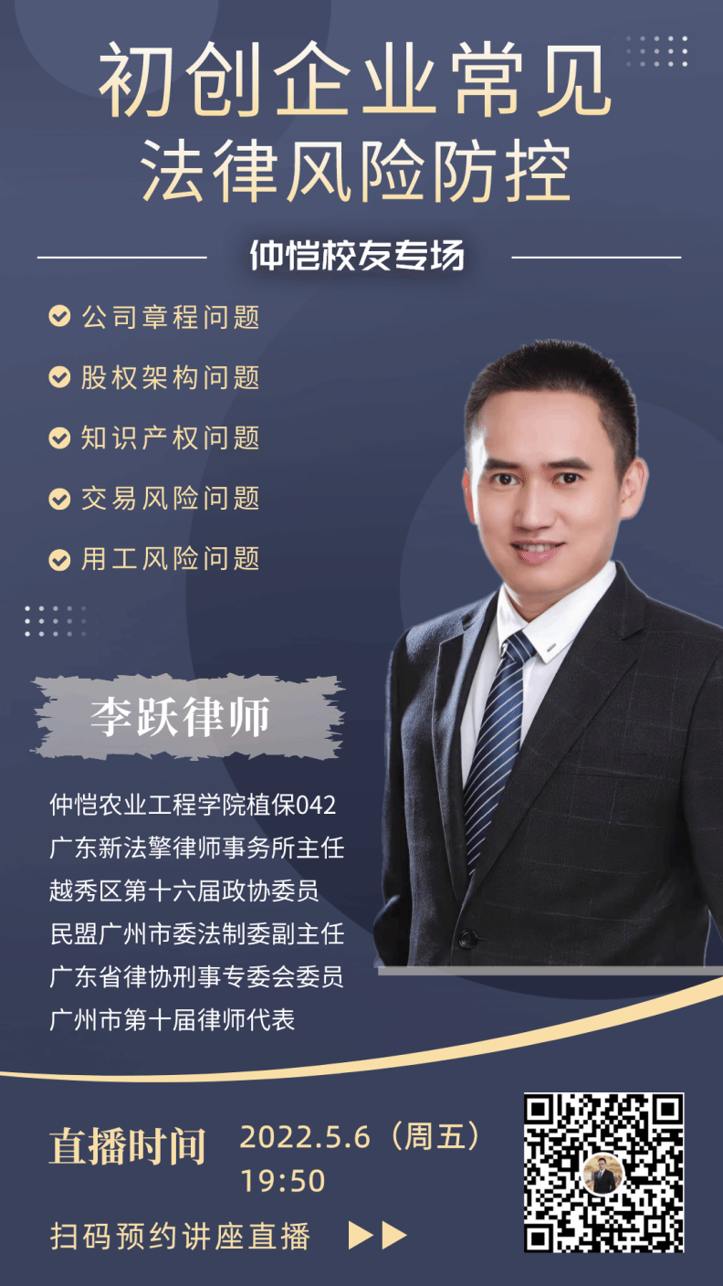 李跃,tyc122ccvip植保系08届优秀毕业生,2016年创立广东新法擎律师事务所,现任广东新法擎律师事务所主任,河源仲裁委员会仲裁员,并先后当选为第十六届广州市越秀区政协委员,民盟广州市委员会法制委员会副主任,广州市第十届律师代表大会代表,广东省第十二届律师协会刑事法律专业委员会委员。先后获得“参政议政工作先进个人”、“公益先进单位奖”、“理论成果奖”、“社会责任贡献奖”、“维护社会稳定奖”等多项奖项。