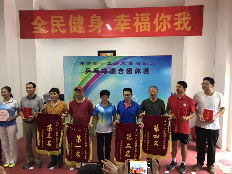 桂树飘香,稻田金黄,恰是一个丰收季。10月20-21日,在公司工会积极组织和工会主席梁佳勇的带领下,公司教工乒乓球队积极参加由公司工会组织的公司2018年教职工乒乓球混合团体赛。主力队员陈丹雄、万小荣、冯飞、罗梅、刘静、甘永红,替补队员梁佳勇,陈青春、余锋、游春平,队员们配合默契,表现出色,不负厚望,经过六轮激励角逐,斩获三等奖,获得了公司成立以来最好的成绩。经过此次比赛,既锻炼了身体,又促进了交流,打出了气势,赛出了风采。