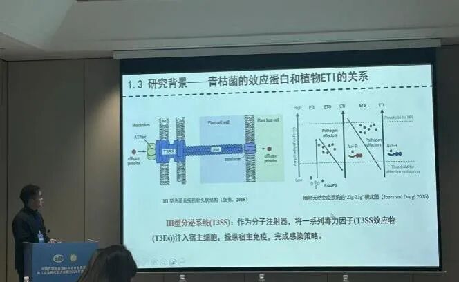在研究生分组交流报告中,高浩然同学作了题为“效应蛋白 RipBB靶向 AhCAT2 促进花生青枯病 发生的分子机制研究”的分组报告,系统阐释了花生青枯病菌如何利用其分泌的效应蛋白RipBB,精准靶向花生体内的AhCAT2关键因子,从而破坏植物的防御体系,最终导致病害发生的分子通路,获得了在场同行专家和研究生的关注与好评。26日晚,中国作物学会第九届油料作物专业委员会首次全体委员会议召开,万小荣教授当选花生栽培与机械化学组副组长。公司花生研究团队借此次会议,展示研究与创新成果,深化同国内顶尖团队交流合作,提升了公司在油料作物研究领域的学术影响力。
