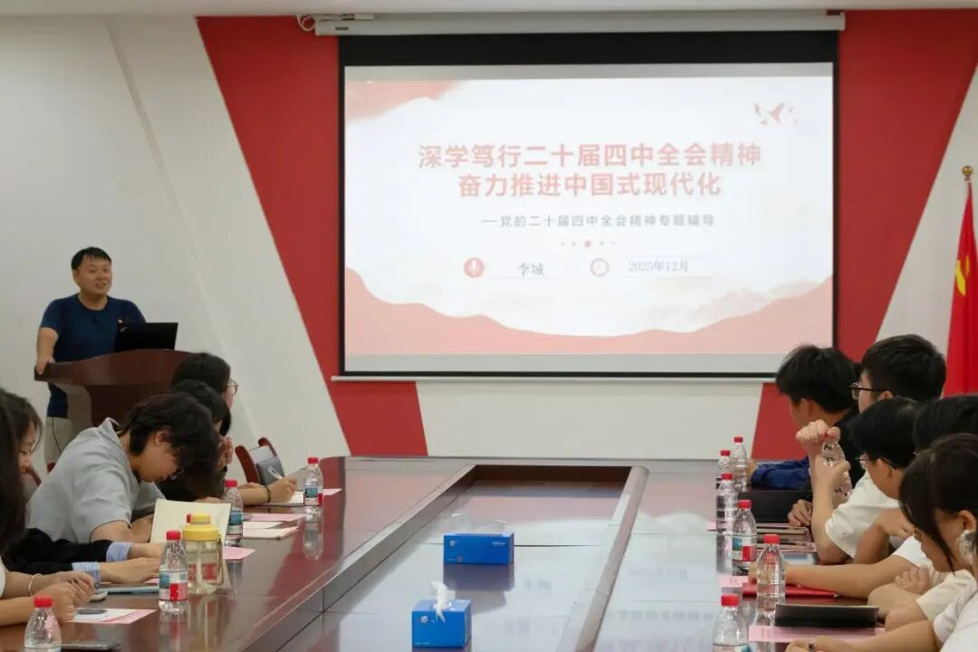 最后,张金凤与李城开展二十届四中全会精神专题宣讲。张金凤以清晰的逻辑脉络,系统介绍了党的二十届四中全会的重要定位;随后,她带领大家回顾了“十四五”时期我国在经济发展、科技创新、民生保障等领域取得的举世瞩目的成就,让在场学子深刻感受国家发展的强劲脉动。李城则聚焦“十五五”规划以高质量发展为主题的核心部署,结合公司学科特色与校园实际,精准解读了全会精神与青年学子的紧密联系,号召全体员工骨干带头深学细悟全会精神,将个人发展与公司人才培养任务、国家战略需求紧密结合,以青春之力助力国家建设,以实干担当书写青年答卷。