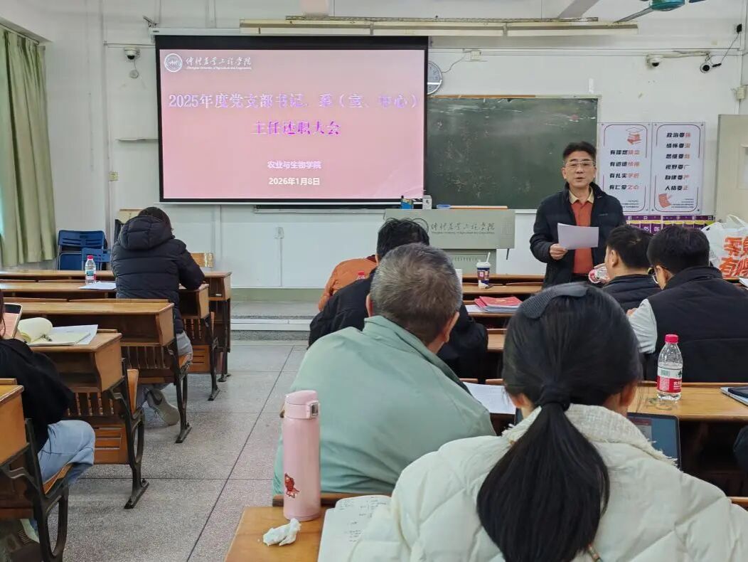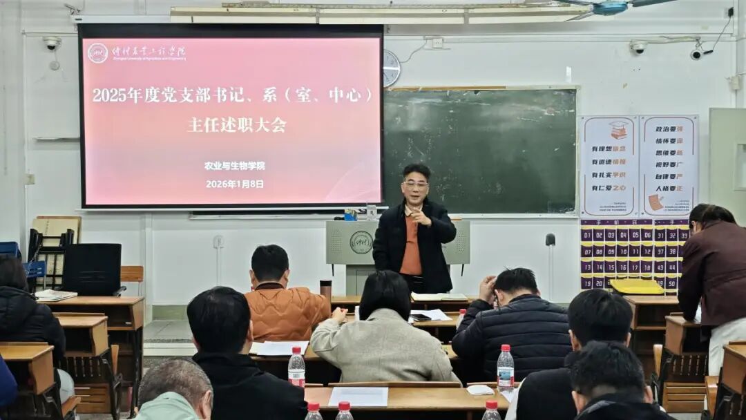 1月8日下午,农业与生物公司党委在海珠校区303教室召开2025年度党支部书记、系(室、中心)主任述职大会。公司党委书记周超雄、经理喻国辉、党委副书记张金凤、副经理徐彪、副经理齐永文,公司全体党委委员、各党支部书记和各系(室、中心)主任参会。会议由周超雄主持。