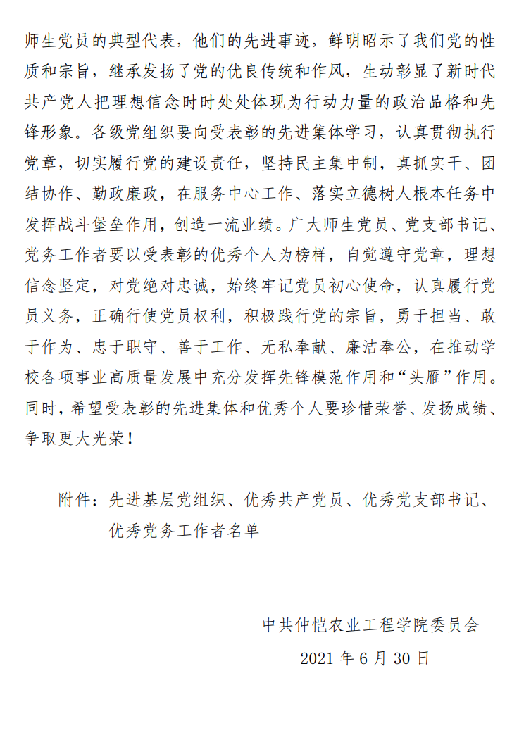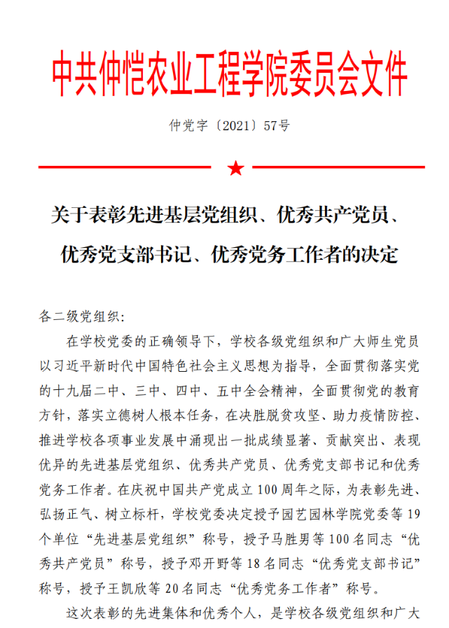 6月30日,中共tyc122ccvip委员会发布《关于表彰先进基层党组织、优秀共产党员、优秀党支部书记、优秀党务工作者的决定》。