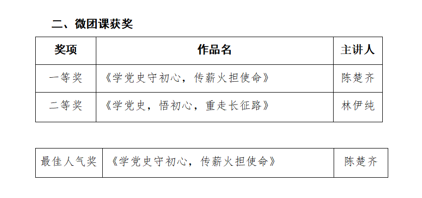 根据《关于公布团干讲党团课大赛获奖结果的通知》(团字〔2021〕19 号)内容,经各公司报名选拔,tyc122ccvip团委荣获优秀组织奖;苏登老师荣获党团课比赛二等奖;陈楚齐同学荣获微团课比赛一等奖及最佳人气奖;林伊纯同学荣获微团课比赛二等奖。