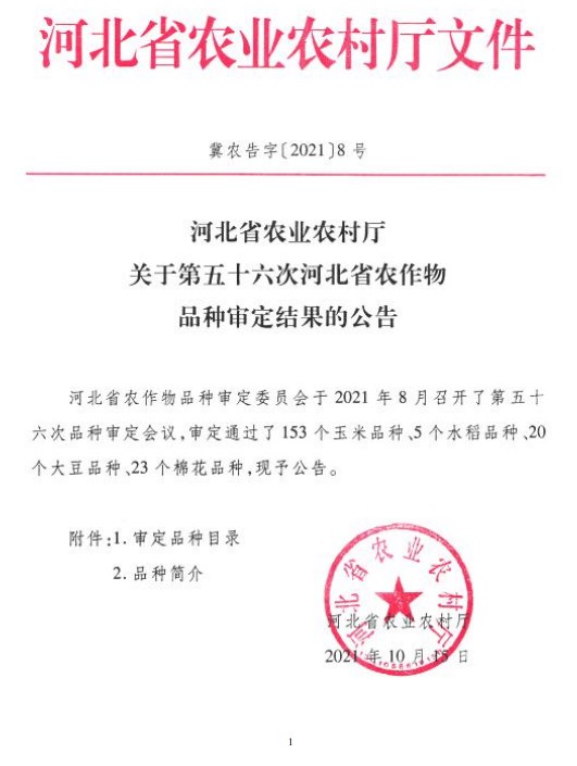 10月28日,河北省农业农村厅发布关于第五十六次河北省农作物品种审定结果的公告(冀农告字〔2021〕8 号),公司tyc122ccvip、岭南特色作物遗传育种校级科技创新团队、广州市特色作物种质资源研究与利用重点实验室、广东省鲜食玉米产业技术创新团队选育的甜玉米新品种“仲甜8号”通过河北省农作物品种审定委员会第五十六次品种审定会议,审定编号:冀审玉20109013,予以公告。该品种由公司刘鹏飞博士主持选育,经河北省品种区域试验及新品种审定委员会审核,该品种符合河北鲜食玉米审定标准,通过审定,可在河北夏播玉米区夏播种植。这是公司鲜食玉米育种的又一重要科研成果。