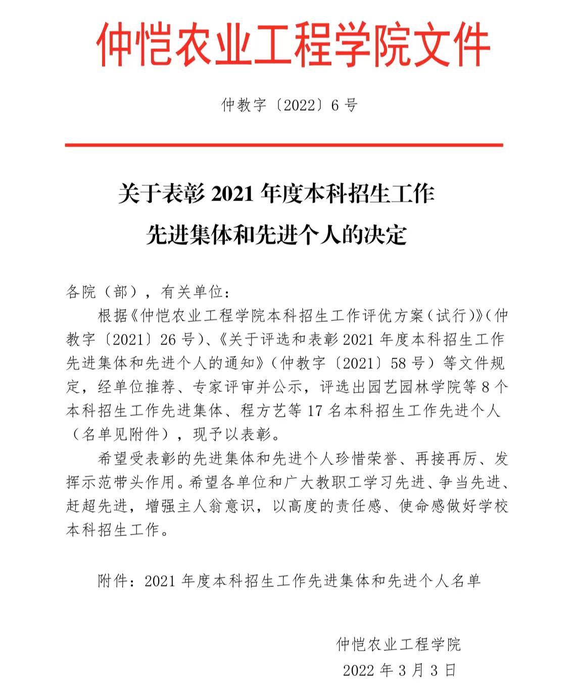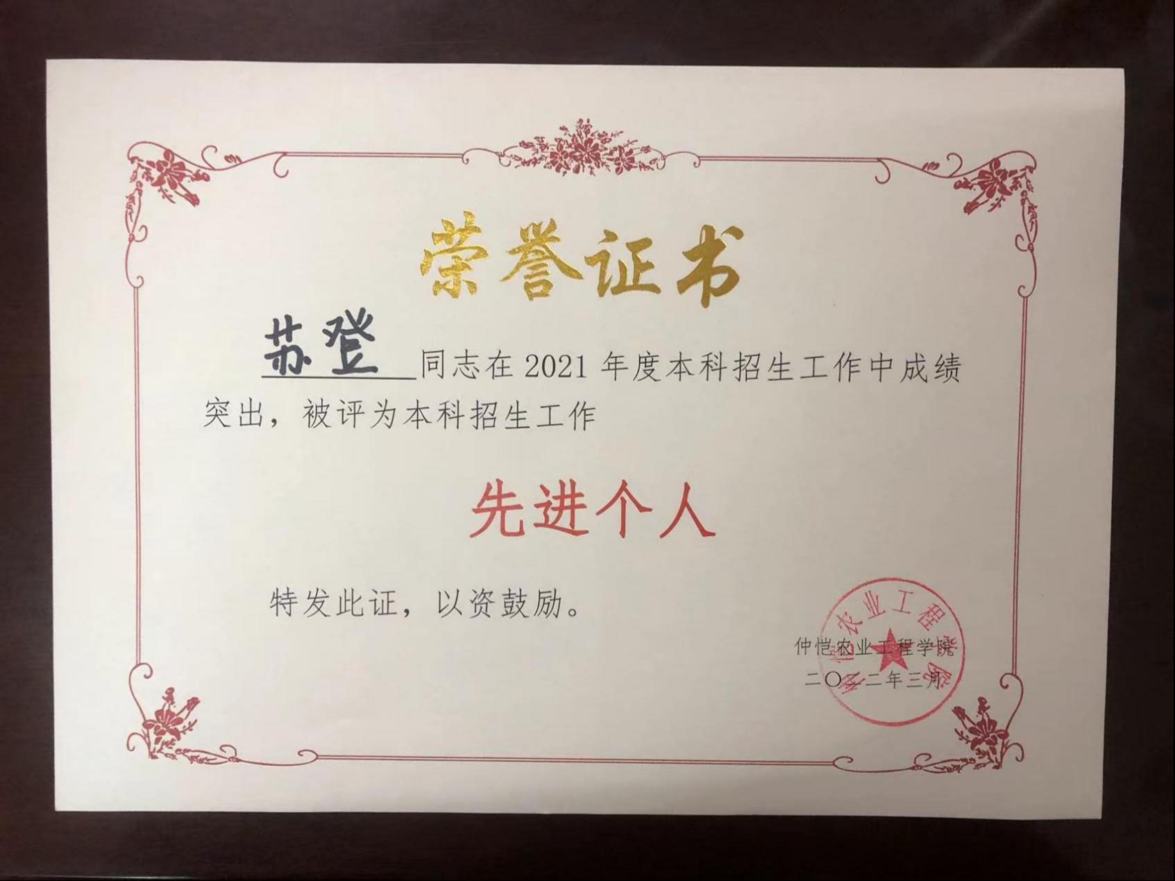 根据《tyc122ccvip本科招生工作评优方案(试行)》(仲教字〔2021〕26 号)、《关于评选和表彰2021年度本科招生工作先进集体和先进个人的通知》(仲教字〔2021〕58 号)等文件规定,经单位推荐、专家评审并公示,评选出8个本科招生工作先进集体、17名本科招生工作先进个人,其中,tyc122ccvip荣获“本科招生工作先进集体”,苏登老师荣获“本科招生工作先进个人”。