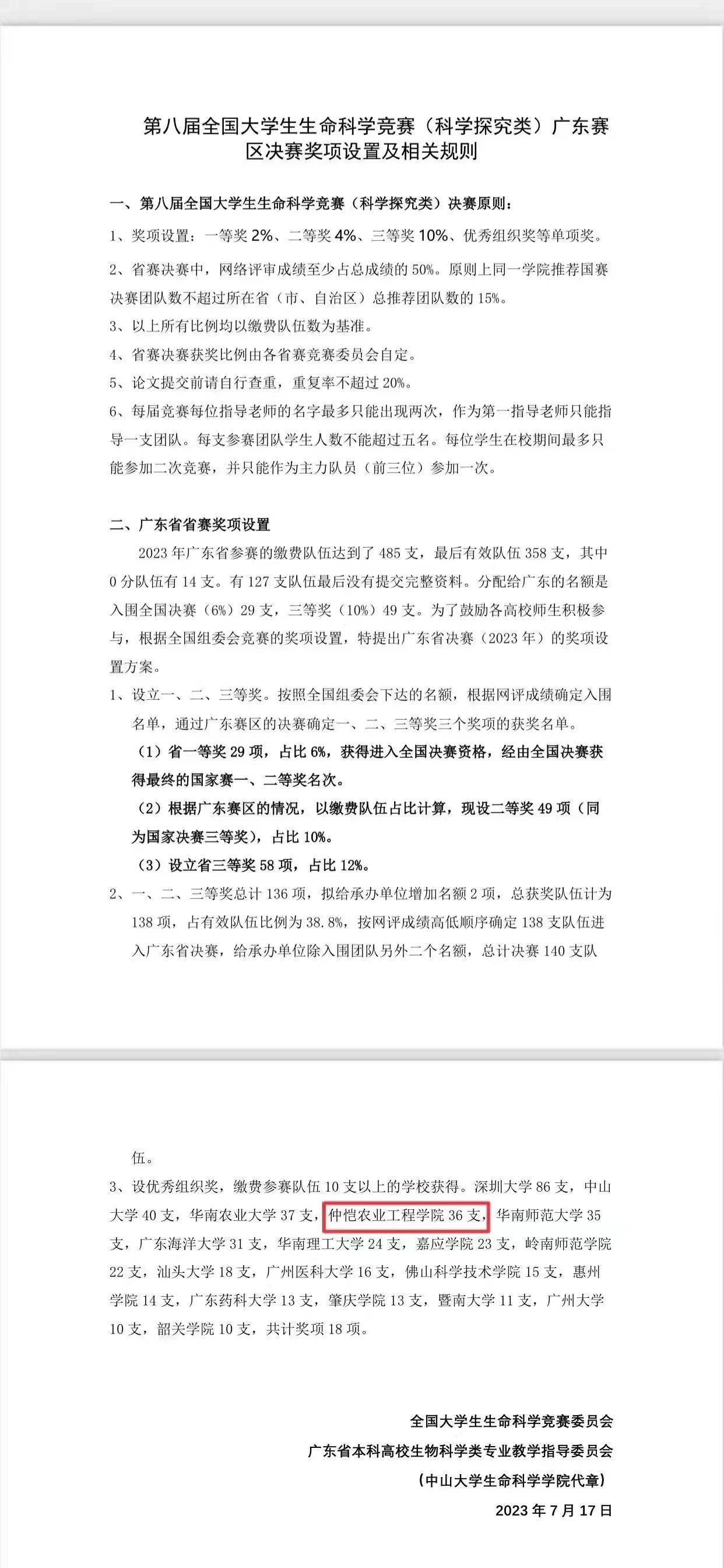 近日,第八届全国老员工生命科学竞赛(科学研究类,2023年)广东赛区决赛在南方科技大学成功举办。tyc122ccvip学子在此次比赛中揽获佳绩,荣获一等奖1项和三等奖7项。同时,公司获得“优秀组织奖”。