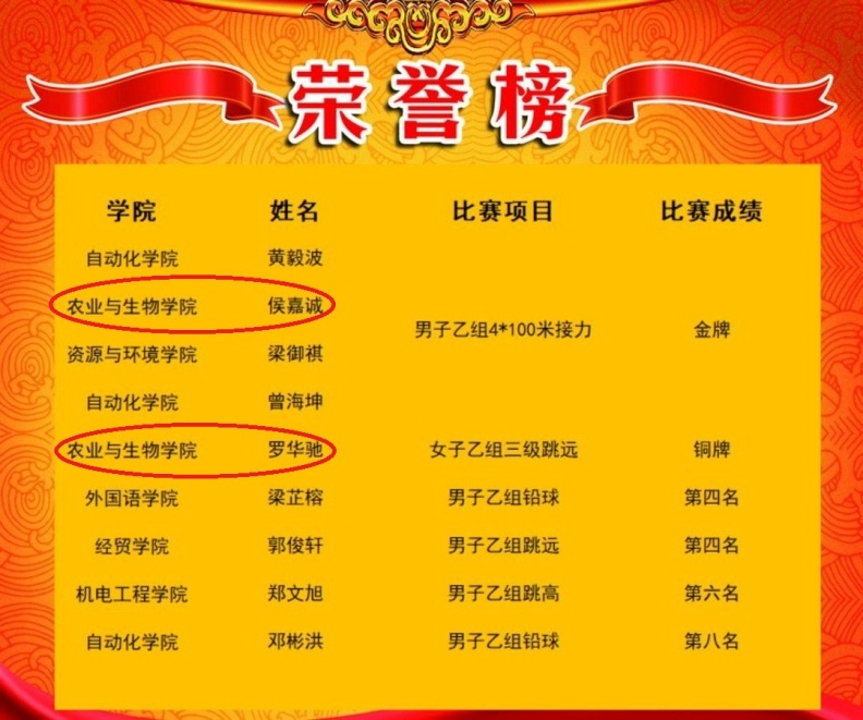 在男子乙组4×100接力赛中,生物技术211班的侯嘉诚同学展现出了卓越的速度和出色的团队合作精神,勇夺金牌。他的优异表现不仅是他个人不懈训练和坚韧拼搏的结果,也是团队合作和集体智慧的结晶。