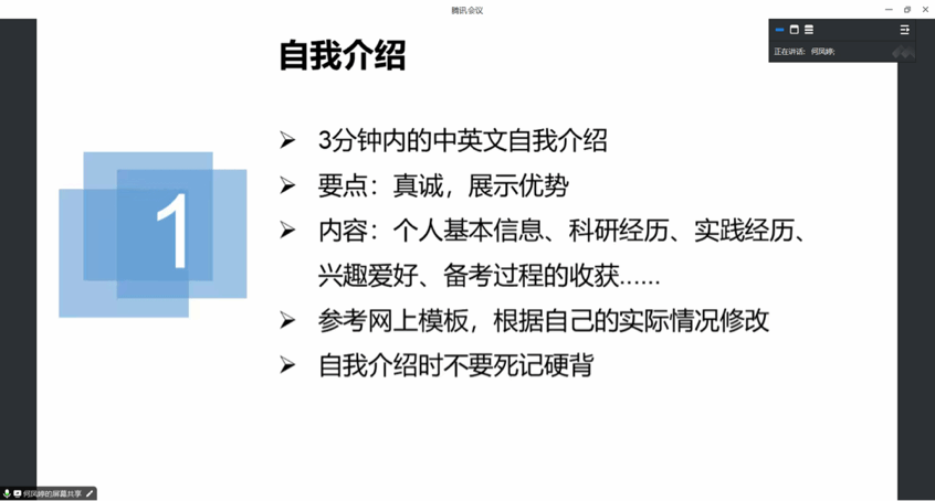 为更好地帮助公司2020级考研通过初试学子备战复试,减轻备考压力,公司于3月19日通过线上平台举行2024年考研复试经验交流会。公司党委副书记张金凤、公司辅导员梁定超、聚创资深考研教师明月、公司2019级毕业生周锐和何凤婷参加了本次经验交流会。