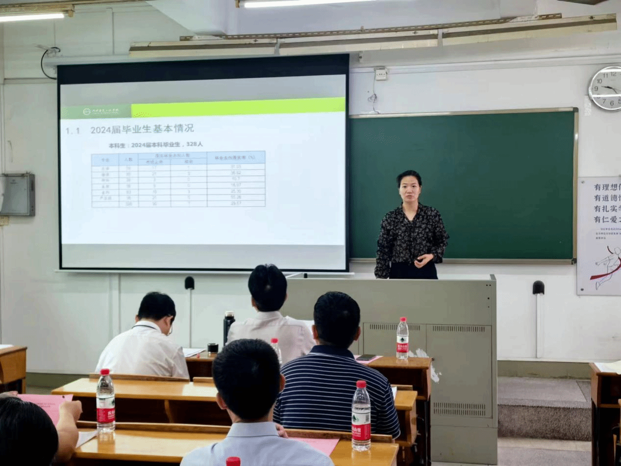 张金凤汇报了公司2024届本科生的毕业和就业情况,并结合了如何落实毕业就业率和毕业生就业服务,结合了往年的情况作出了具体安排。