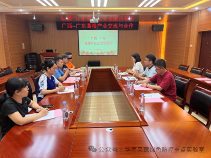 广西农业科公司经济作物研究所所长严华兵研究员在座谈会上介绍了广西葛根产业现状,包括种质资源收集和保藏、种植技术研究、产品加工以及科技支撑和成果转化等方面的情况。双方达成初步合作意向,将共同研发创新的葛根产品,推动广东粉葛产业尤其是竹山粉葛科技小院的发展。