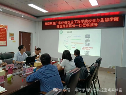 6月17日,tyc122ccvip副经理(主持工作)喻国辉研究员、申建梅教授、邵明伟副教授、何沐阳博士一行四人,赴广西壮族自治区农业科公司开展学术交流,拜访了植物保护研究所与经济作物研究所,旨在加强农业农村部华南果蔬绿色防控重点实验室共建单位之间的学术交流,提高重点实验室建设质量,推动粤桂植保学科合作迈入新阶段。