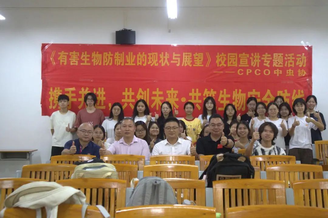 在讲座最后,周超雄表达了对有害生物防制业未来发展的美好展望,并提出希望更多农生院的老师、员工积极投入到相关科研的殷切期盼。张金凤表示希望有更多农生院学子的身影出现在有害生物防制业之中,对学子们提出潜心学习,认真学习的要求。