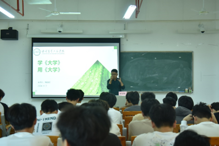 课上,喻国辉以“中国的四书分别是什么”为引子引出本次思政课的主题——学《大学》用《大学》。他从春秋战国各国之间纷争历史缓缓道来《大学》的成书过程,并从七个方面深入浅出地剖析了此书重要思想,让同学们对《大学》有更深刻地了解。他指出,“大学之道,在明明德,在亲民,在止于至善”是全书的核心,也是每个人应该追求的思想境界。
