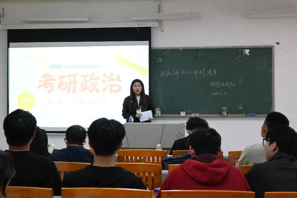 讲座内容详尽且深入。李老师首先对25考研考纲的实质性变动进行了细致的阐释,使同学们对考试要求有了更为明确的理解。随后,她深入分析了考研政治的学科特性,并分享了客观题的审题与答题技巧。在主观题方面,李老师毫无保留地传授了答题的模式与策略。此外,李老师还特别聚焦于今年的热点事件,为大家进行了全面的整理与解读。