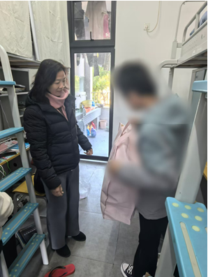 张金凤带领辅导员老师们深入员工宿舍,详细询问了同学们的生活和学习情况,关心他们的饮食起居、卫生安全、学习情况,叮嘱大家要注意保暖、预防感冒,注意用电安全。同时,也希望大家珍惜在校时光,合理规划作息时间,努力学习,为实现自己的人生理想而奋斗。