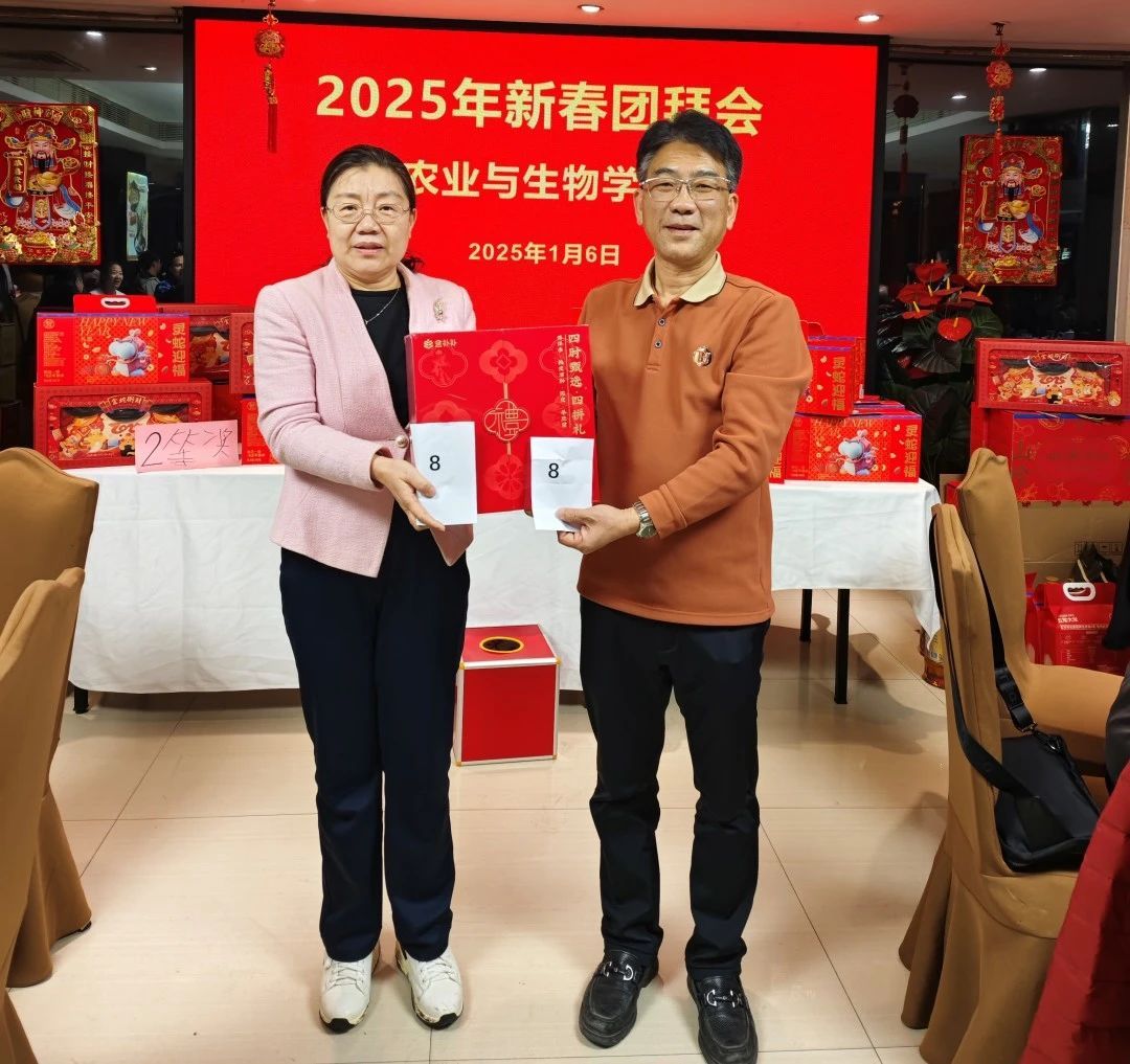 本次团拜会的抽奖环节共设置了四个奖项等级,一等奖1个,二等奖6个,三等奖12个,以及数量众多的四等奖。随着抽奖箱缓缓打开,一个个幸运儿的名字被逐一揭晓,现场不时爆发出惊喜的欢呼声。获奖教职工们脸上洋溢着幸福的笑容,纷纷表示这是他们收到的最特别的新年礼物。晚宴上,大家举杯共祝,畅谈过去一年的收获与未来一年的展望,整个会场洋溢着和谐、欢乐的气氛。