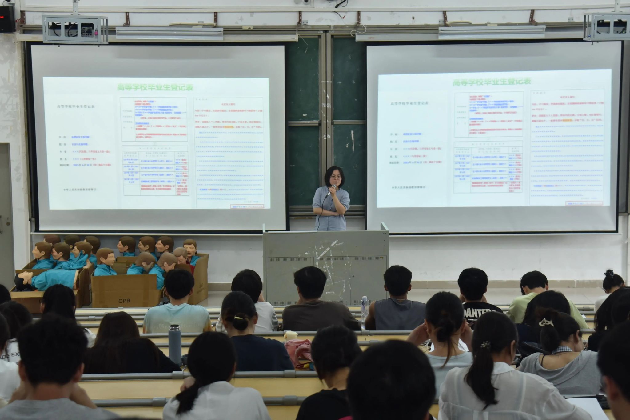 紧接着,辅导员老师们分别从就业服务平台、电子协议书、毕业去向登记、档案去向投递和文明离校及求职安全五个方面对毕业生进行求职安全教育。李城在会上指导毕业生该如何填写毕业去向登记,详细解读了毕业生档案的派遣方案。他提醒毕业生需注意毕业生户口迁移及发放毕业证和学位证的时间,并针对求职安全,叮嘱毕业生要看好“三证”,掌握劳动法规,谨慎签订劳动合同,警惕传销陷阱,敢于对繁多收费说“不”。孙晓芳着重强调毕业登记表的填写,提醒毕业生们要仔细填写,并以流程图的形式说明了毕业生各类就业方案的实施过程。