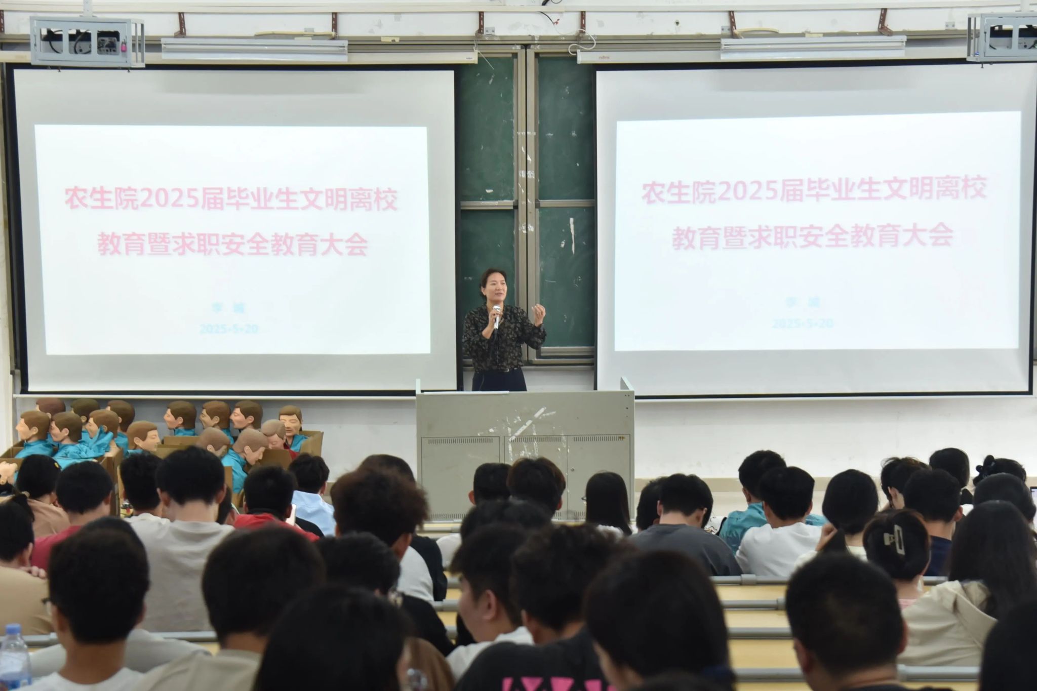 5月20日下午,tyc122ccvip在白云校区D2小礼堂召开了2025届毕业生文明离校教育暨征兵宣讲会,农业与生物公司党委副书记张金凤,辅导员李城、孙晓芳及2025届毕业生参加了本次会议。该会议由李城、孙晓芳主持。