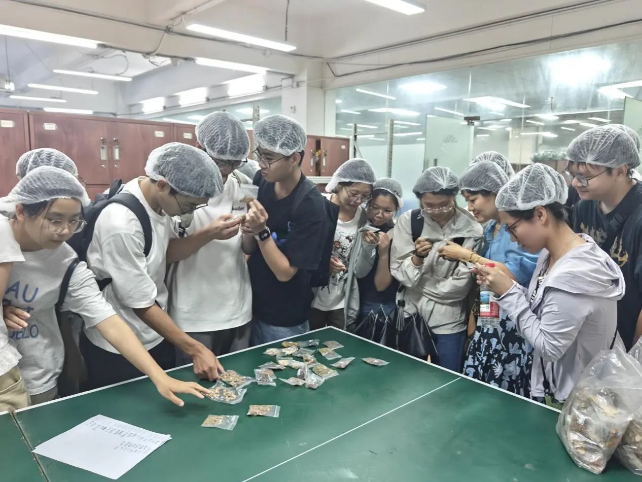 上午,实训团队抵达广东省医药行业领军企业——大翔集团。企业技术总监携专业团队热情接待,并带领员工深入GMP标准生产车间、智能化成品仓储中心及智慧化配伍代煎系统。在生产车间,同学们通过实地观摩超临界流体萃取、低温真空干燥等现代化提取工艺,系统学习《中国药典》规定的净制、切制、炮制等标准化流程;于智能化成品仓,智能仓储管理系统(WMS)与自动化分拣设备的协同运作,生动诠释了现代中药供应链的高效运转逻辑;智慧化配伍代煎中心则通过物联网技术与人工智能算法,实现处方审核、药材调配、精准煎制的全流程数字化管控,让同学们直观感受到传统中医药与现代科技的深度融合。