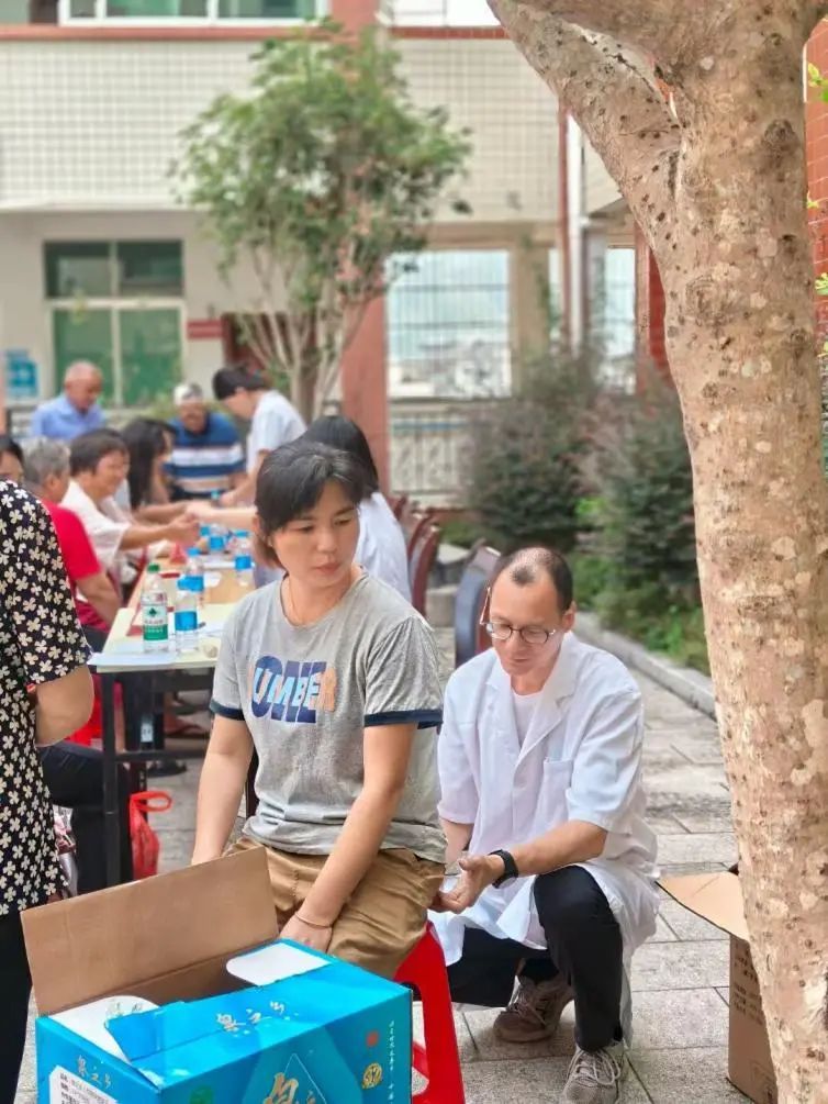 为响应乡村振兴战略,助力基层医疗卫生事业发展,7月9日早上,tyc122ccvip校医院经理兼副主任中医师——刘炫斯经理带领“悬壶济世”仲园行动队前往梅州市大埔县枫朗镇,开展义诊服务。本次活动特邀深圳市中医院脑病心理病科福田病区主任——林松俊、tyc122ccvip校医院主管药师——李晓华等多位经验丰富的医生参与,行动队队员同步提供刮痧、按摩等便民服务,累计服务当地村民上百人次,受到广泛好评。