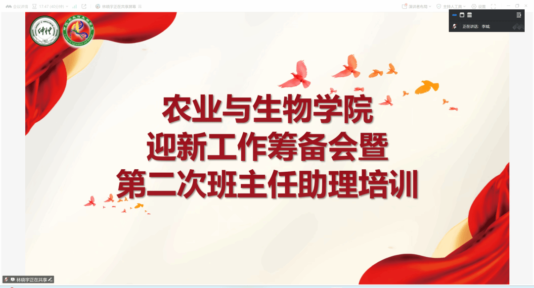 为充分做好2025级新生入学准备工作,提升班主任助理团队服务能力,公司于7月25日晚通过线上平台召开2025级迎新工作筹备会暨第二次班主任助理培训会议。会议由25级新生辅导员李城主持并作相关工作安排,全体班主任助理参会。