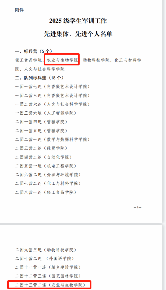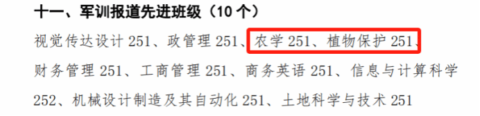 军训报道先进班级:农学251、植物保护251