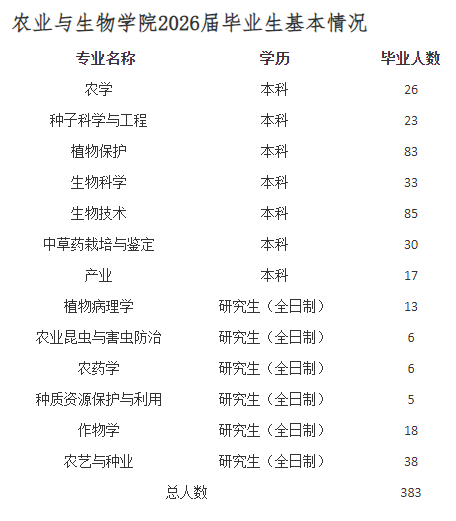 就业方向:毕业生可在农业及其它相关部门或单位从事与农学有关的教学与科研、推广与开发、生产与管理、经营与贸易等工作。