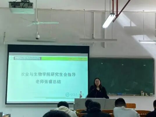 大会尾声,张睿老师上台进行总结发言。首先,她充分肯定了第四届研究生会干部在任期内的辛勤付出与突出业绩。同时,她对新一届研究生会提出了殷切期望:一是坚定理想信念,厚植“强农兴农”的家国情怀;二是潜心科研创新,锤炼“求真务实”的过硬本领;三是强化服务意识,建设“温暖贴心”的员工组织。希望研究生们不仅要“追求卓越”,更要“身心健康”,学会自我调节,保持乐观向上的心态,在追求学术卓越的同时,也能享受丰富多彩的校园生活。
