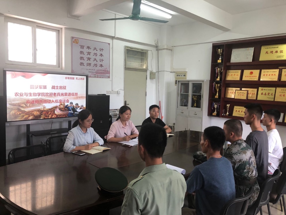 最后,高结怡代表公司欢迎四名老兵载誉归来,同时祝贺即将奔赴军营的新兵成为中国人民解放军的光荣一员。高结怡指出,退伍军人是仲园里一道“亮丽的风景线”,经历了军旅的洗礼,从身体到意志获得了全面的成长与进步,相信每一位退伍同学都能在学习和生活中展现出农生人的出色和精彩。她希望入伍新兵勇于面对军营的挑战,在磨练中获得进步,仲恺农生院永远是他最坚强的后盾。三位老师共同带领大家重温了2017年9月《习近平总书记给南开大学8名新入伍老员工的回信》,希望所有退伍老兵和新兵同学牢记习近平总书记的嘱托,无论是在军营中还是校园里,都牢记自身使命,努力为国家建设、军队发展,为中华民族伟大复兴做出自己的贡献。