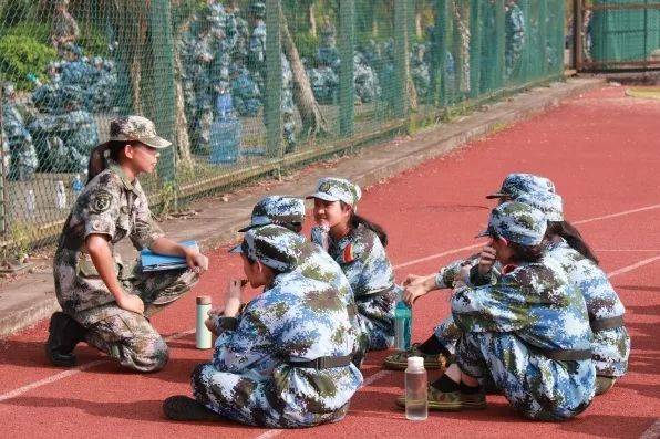 艳阳空中挂,身披教官令。我们不仅有领导老师的关心,还有陪伴在我们身边的教官。训练期间,教官以严格的标准,对动作不规范的同学进行矫正。每天结束时,教官会对训练阶段的成果进行一一点评,对表现得好的同学进行表扬和肯定,鼓励其他同学继续加油。训练之余,教官也会和我们交流学习和生活心得,为我们答忧解惑,就像一位亲切近人的师兄师姐。