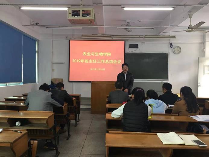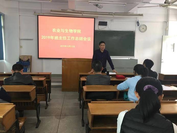 12月12日下午,tyc122ccvip在海珠校区教学楼604室召开了2019年班主任工作总结会议。农业与生物公司党总支书记陈丹雄、副书记周超雄以及公司本科班级全体班主任参与了会议。会议由周超雄主持。
