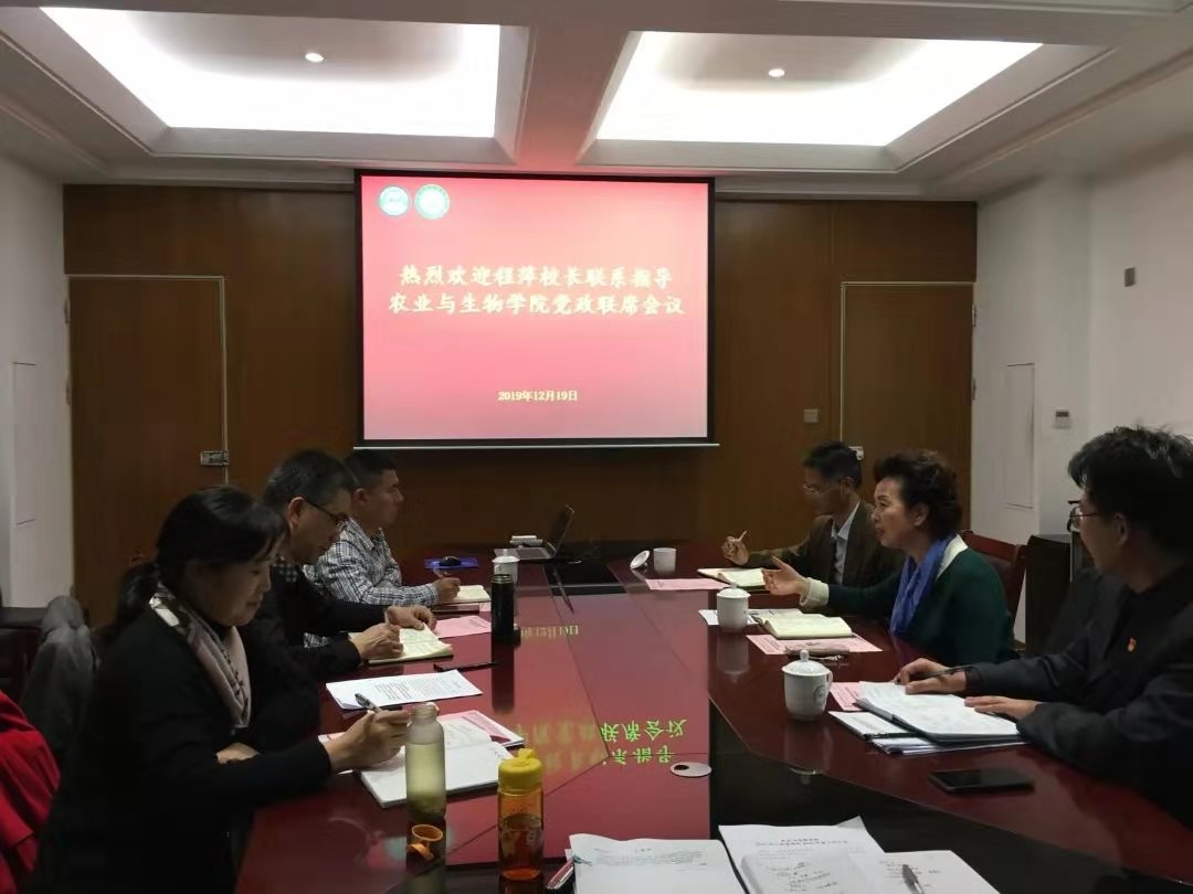 程萍董事长表示非常高兴参加农业与生物公司党政联席会议,全面了解农生院2019年各项工作的开展情况。程萍董事长对农生院领导班子的工作给予充分肯定,认为农生公司党政领导班子团结一心,共同谋划,分工明确,各位副职认真履职,工作特色、有成效。最后,程萍董事长作提出5点期望:第一,未来公司要加强领导班子建设,强化顶层设计,理清工作思路。在新时代乡村振兴背景下,立足广东产业,系统思考找准公司发展定位,发挥自身专业特色、学科优势,找到与其他高水平农业大学的错位发展优势。第二,2020要突出工作重点,打造公司亮点。以仲华基因科技产业公司为重要抓手打造“金专、金课、金师”,以植物健康创新研究院为重要依托擦亮金字招牌,加快现代种业创新研究院公共平台的建设。第三,重点瞄准领军人才的引进,集聚力量重点培养优势学科,强化教师队伍建设。第四,加强员工思想政治教育,尤其加强农学类专业员工的理想信念教育和专业思想教育。希望大家更多地深入员工课堂宿舍,深入员工实际,深入了解员工需求,并高度关注员工心理健康。第五,坚持创新。不管是教学、科研或对外合作,都要创新工作方式方法,完善工作机制及公司各项制度,提高公司治理体系和治理能力。