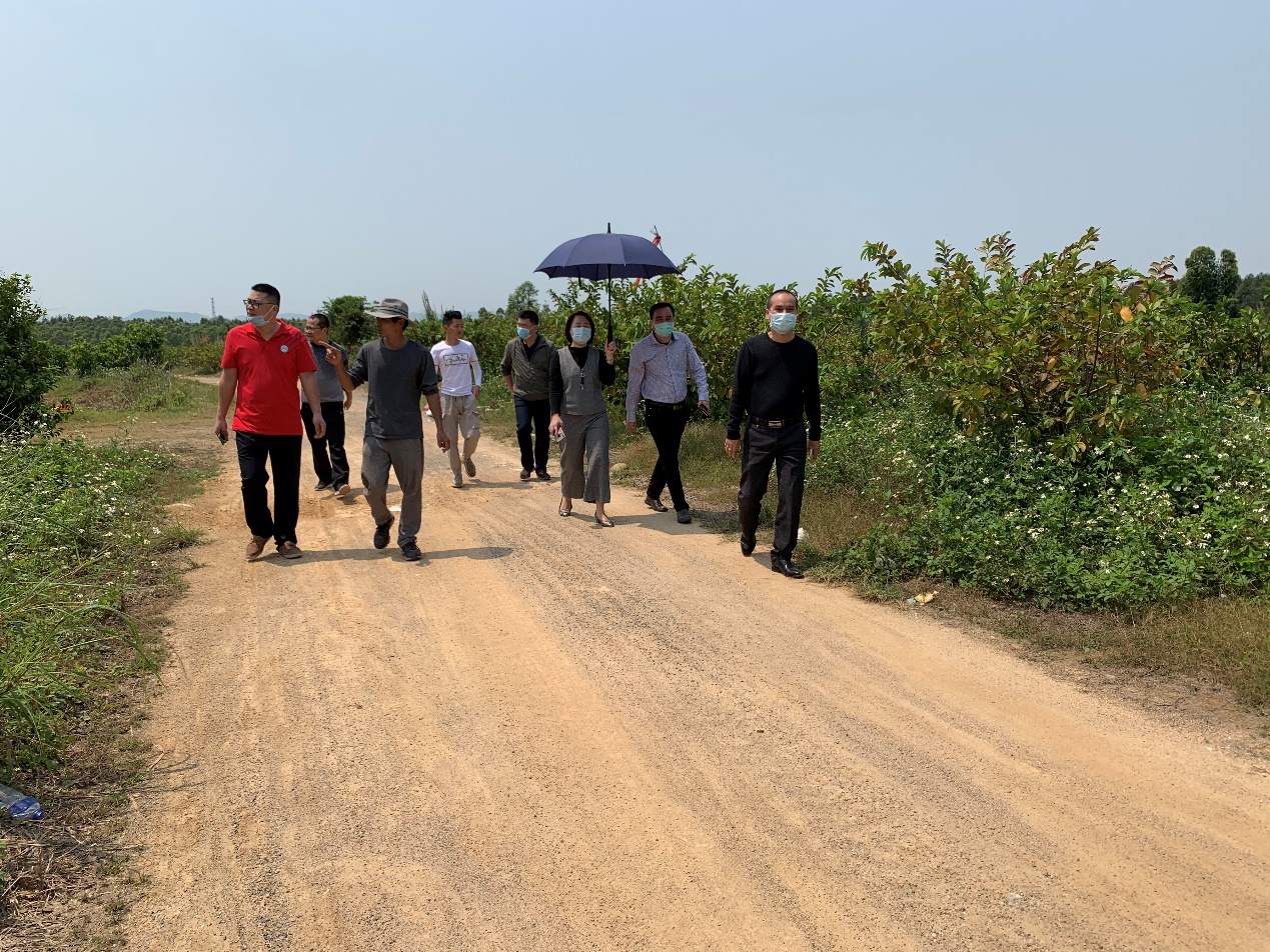 10号下午,在苏小全主席和徐碧云主任的带领下,陈青春等一行参观考察了大嶂村的扶贫产业基地——新恒泰生态种养科技有限公司的柑橘和芭乐等水果的种植基地,了解了到当地水果生产和销售过程中面临的问题并给出建设性意见,提出依托国家新农村建设和澎湃革命农会旧址的红色文化,可以打造“观光采摘游玩”、“订单农业”促进“产销一体化”,建立特色鲜明的文化名片,加快农业转型发展,促进农民增产增收。