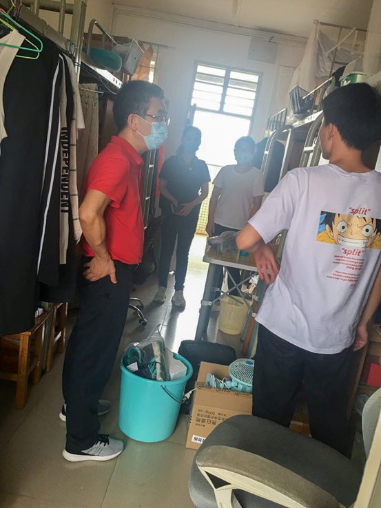 公司党总支副书记周超雄带领辅导员一行,前往员工宿舍看望返校毕业生,关切询问员工考研及就业落实状况,并叮嘱员工严格遵守公司疫情防控要求,做好个人健康防护。