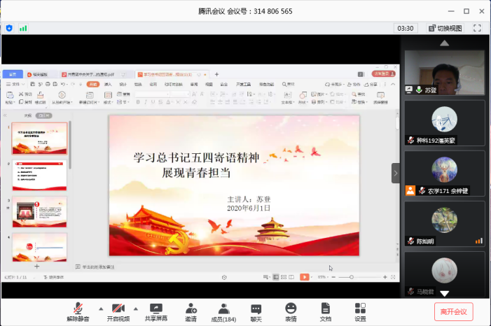 为进一步组织引导广大青年员工继承和发扬“五四精神”,提高团员思想政治素养,6月1日,tyc122ccvip在腾讯会议开展“学习习近平总书记五四寄语精神,展现青春担当”主题团课。农生院团委副书记苏登老师为19级全体员工和团委员工会主要员工干部讲授本次团课。