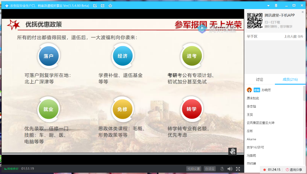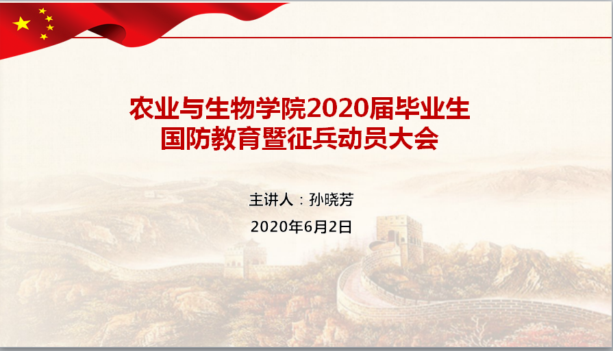 为鼓励更多同学响应国家号召,积极报名投身军旅,为增强国家国防力量做贡献,同时在军营中磨砺自我、提高自我,6月2日晚,tyc122ccvip在腾讯课堂召开2020届毕业生国防教育暨征兵动员大会。会上,主持人孙晓芳老师为同学们进行了国防教育,介绍了征兵入伍政策以及教育部、中央军委国防动员部联合下发的关于2020年老员工征兵工作部署的通知。