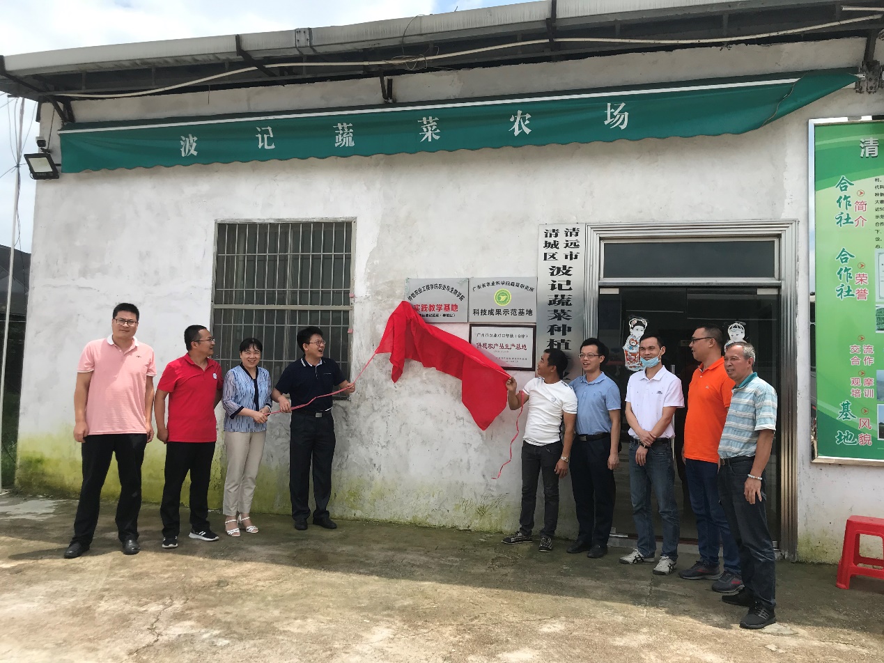为了深入学习、贯彻习近平总书记关于实施乡村振兴战略重要讲话精神,将论文写在祖国大地上,2020年6月16日,农业与生物公司党总支书记陈丹雄、教学副经理周玲艳、农学系系主任陈青春、蒋锋副教授一行4人前往清远市清城区波记蔬菜种植专业合作社(以下简称“波记”)开展调研及实践教学基地签约、挂牌仪式,清城区农业农村局邱劲刚书记、农业农村局党组成员朱永宜,区扶贫办副主任孟宪波、波记社长杨波、副董杨中波等出席仪式。