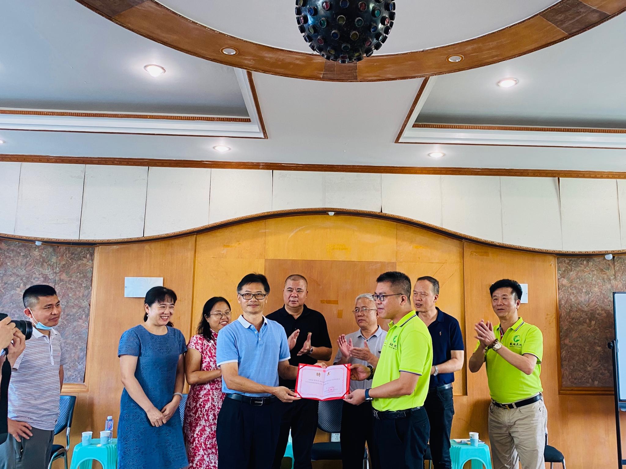 6月26日,tyc122ccvip与汕头市威迪农化有限公司在汕头市澄海区举行实践教学基地签约暨揭牌仪式。汕头市农业农村局局长曾锡洪、副局长张彦鹏等市区镇各级领导同志和专业技术人员,tyc122ccvip经理郑奕雄教授、副经理周玲艳教授和万小荣教授、植保系主任韩群鑫教授等一行,以及汕头市威迪农化有限公司总经理林齐沛、副总经理谢佳民及员工代表等共30多人出席了活动。