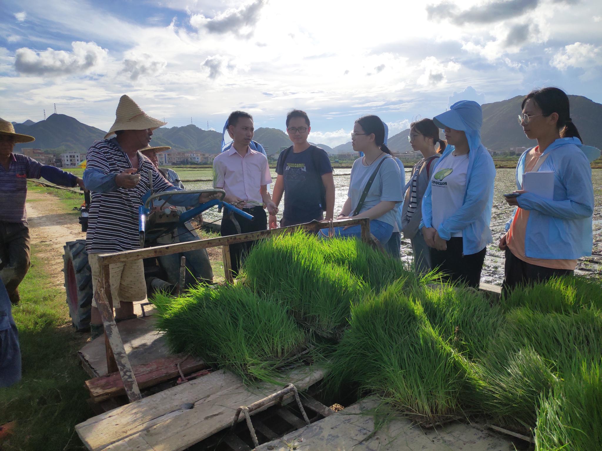 8月8日下午,在唐辉武副教授的带领下,团队前往赤溪镇渡头村水稻种植基地参观学习。渡头村总耕地面积一千多亩,其中水田约692亩,旱地约390亩,盛产稻谷、番薯、香蕉。